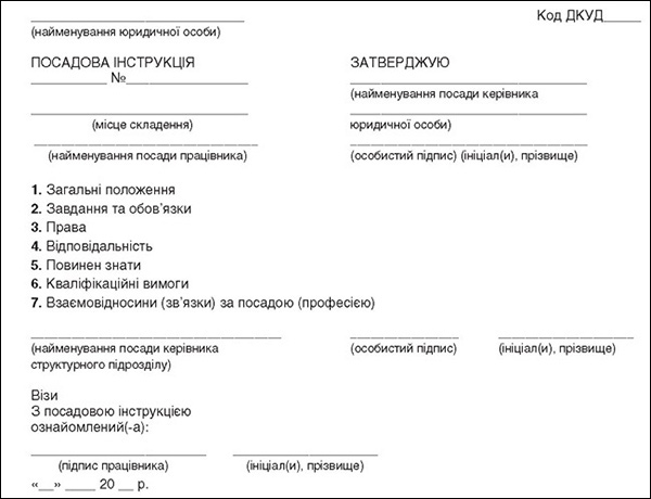 Типова посадова інструкція міститься у Збірнику уніфікованих форм організаційно-розпорядчих документів.
