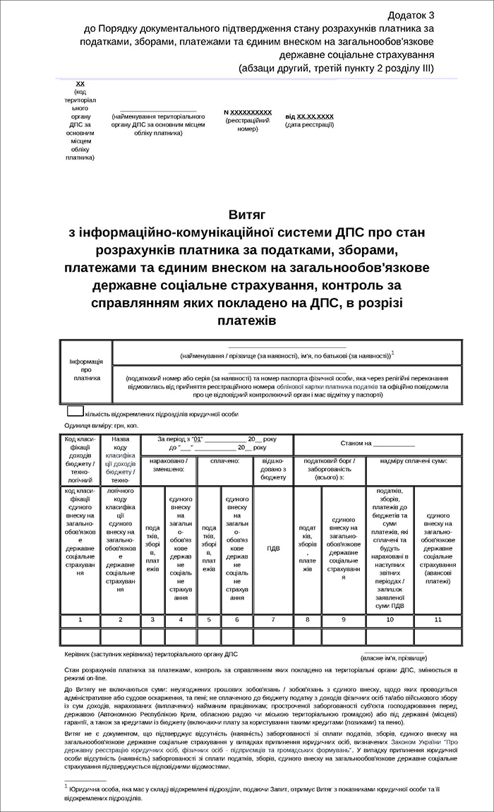 Порядок документального підтвердження стану розрахунків платника за податками, зборами, платежами та єдиним внеском на загальнообов’язкове державне соціальне страхування