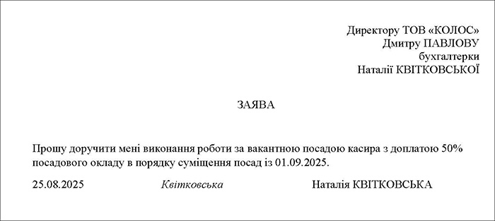 Зразок 2. Заява на встановлення суміщення посад (Завантажити)