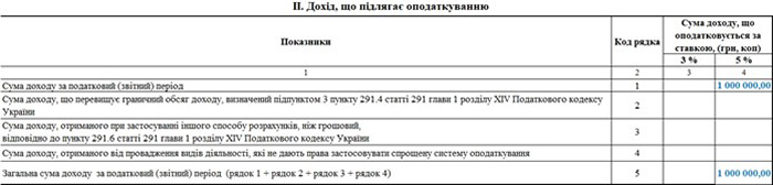 Сума доходу в цьому рядку не може бути більшою за граничний обсяг річного доходу (пп. 3 п. 291.4 ПКУ) — 1 167 МЗП (для 2025 року — 9 336 000 грн).