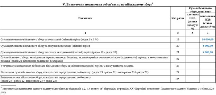 Розділ V. Визначення податкових зобов’язань по військовому збору (див. зразок 4)