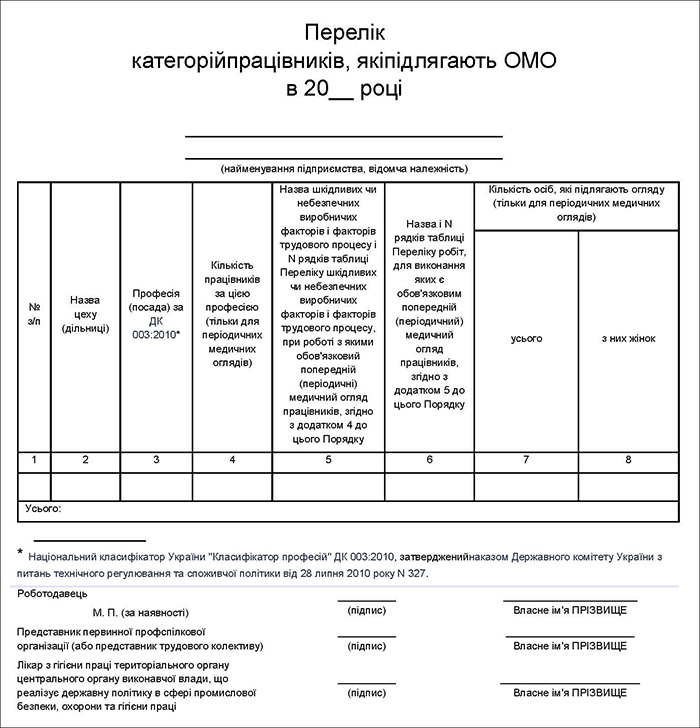 Бланк Переліку категорій працівників, які підлягають ОМО (Завантажити)