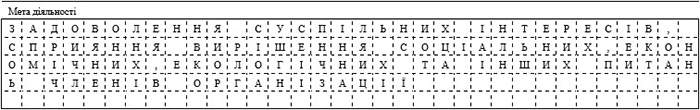 Далі слід зазначити вид (див. зразок 2) та мету діяльності відповідно до установчих документів (зразок 3).