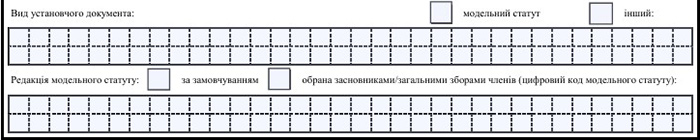 — вид установчого документа (у нашому випадку — це статут відповідно до Закону №4572 або модельний статут).