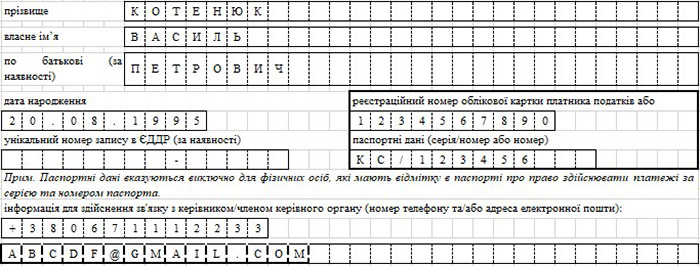 Зразок 6. Зазначаємо інформацію про керівника ГФ-юрособи