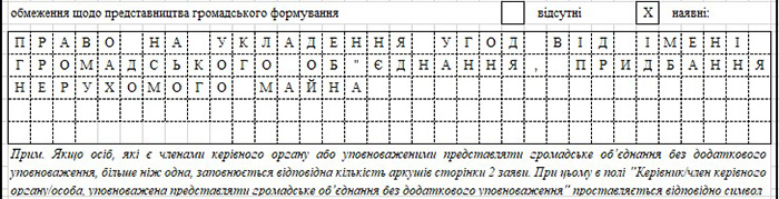 Зразок 7. Зазначаємо в Заяві обмеження керівника (за наявності)