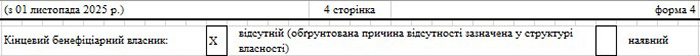 На сторінці 4 слід заповнити відомості про кінцевих бенефіціарних власників (КБВ), якщо вони відсутні, — про це теж треба зазначити (зразок 9)!