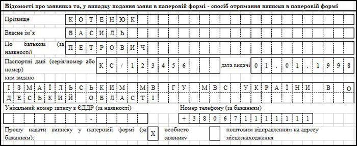 Зразок 12. Зазначаємо відомості про заявника, якщо паспорт у вигляді книжечки