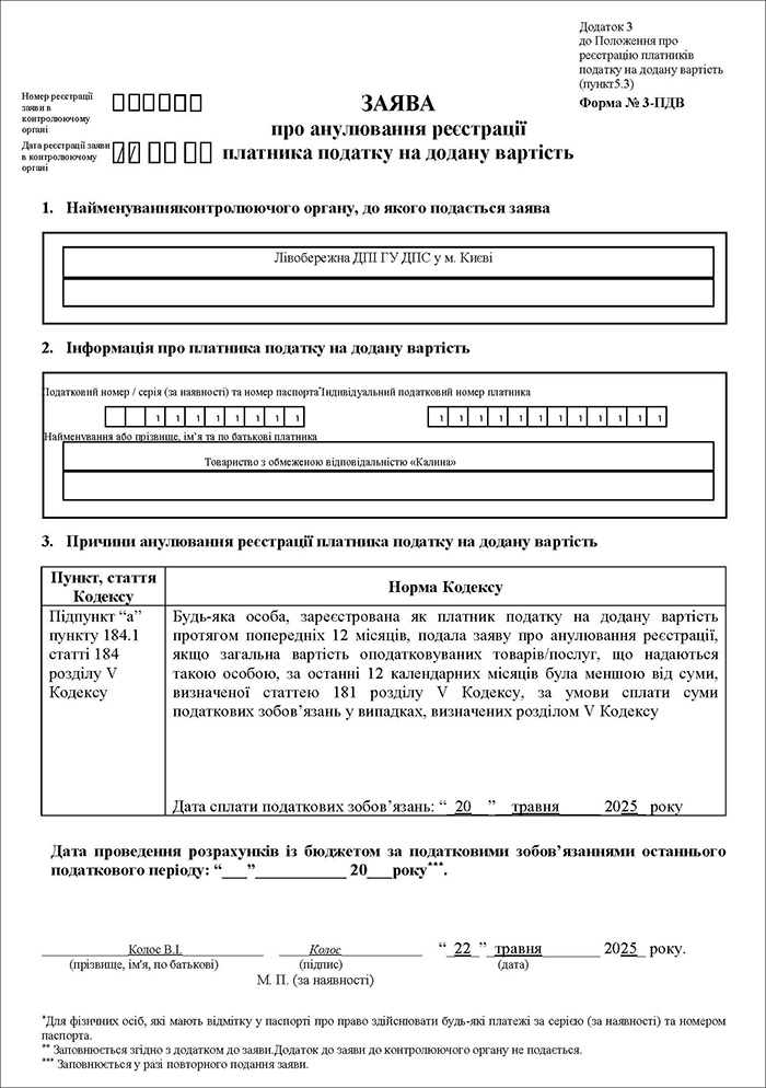 Цю Заяву подають зареєстровані платники ПДВ для анулювання такої реєстрації.