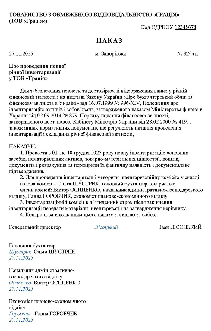Зразок 2. Наказ про проведення річної інвентаризації (Завантажити)