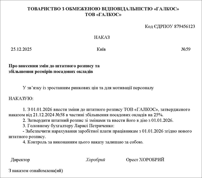 Також можна видати окремий наказ про внесення змін до чинного штатного розпису.