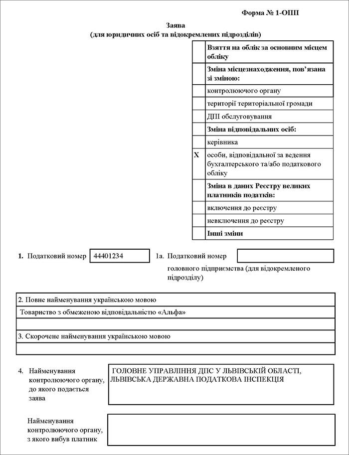 Зразок 4. Форма №1-ОПП (Завантажити)